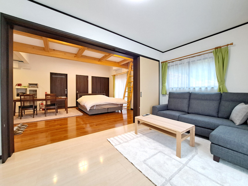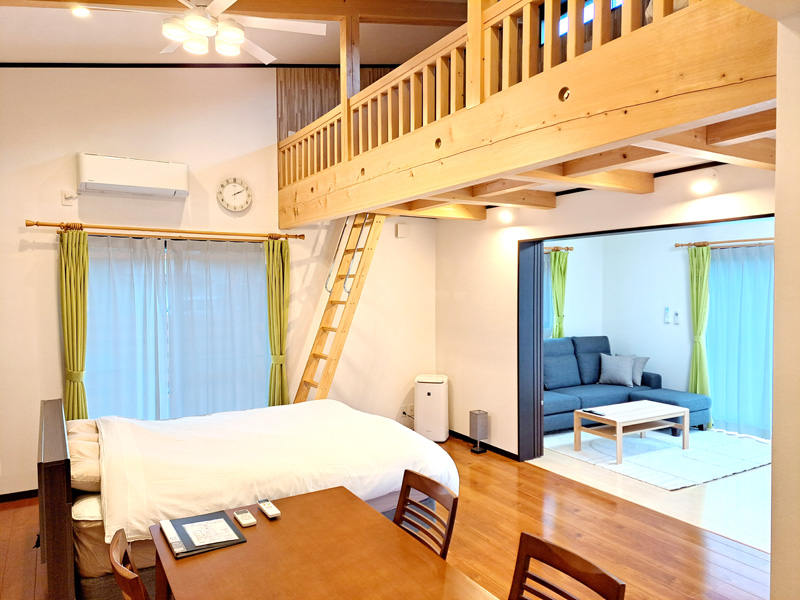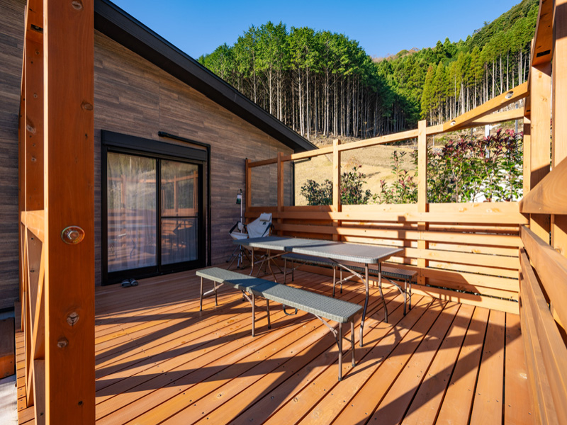 ウッドデッキ付き2部屋構成のスイートタイプコテージです。