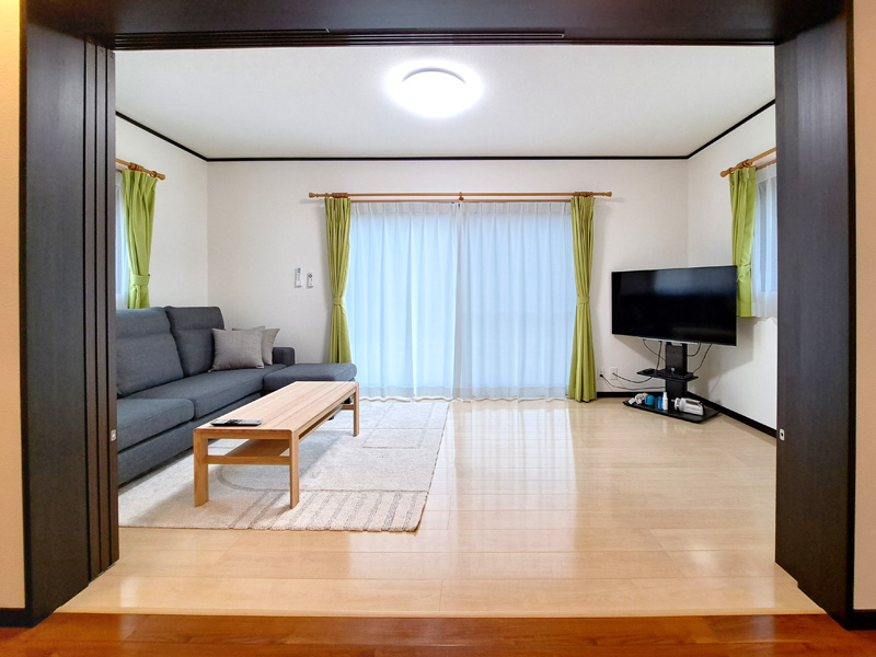 フローリング16畳+8畳のゆったりできる室内(バリアフリー設計)です。