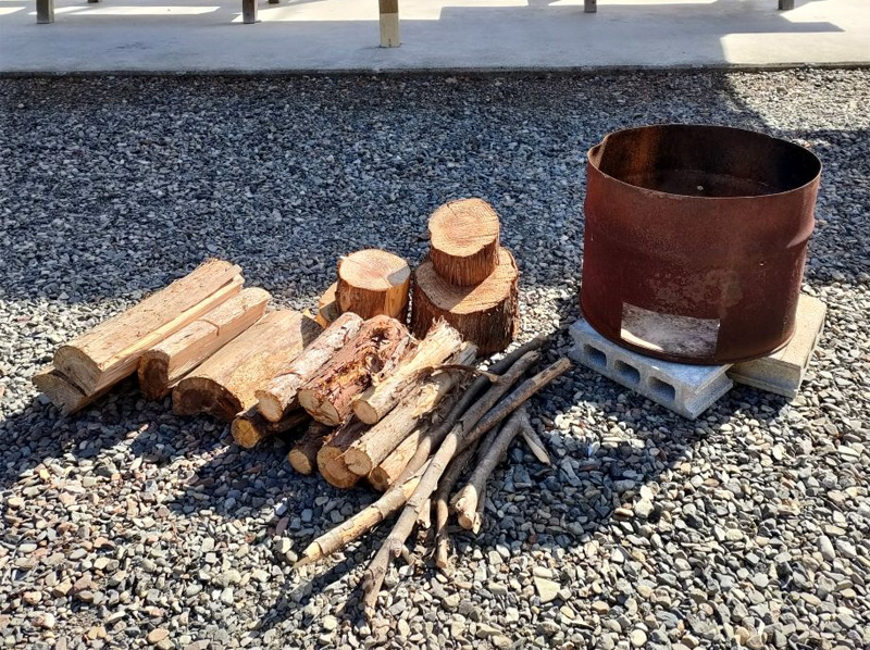 - 丸太30kg以上+ドラム缶、テーブル・イス付きで4,000円(税込)です。※暗くなってから2時間程度